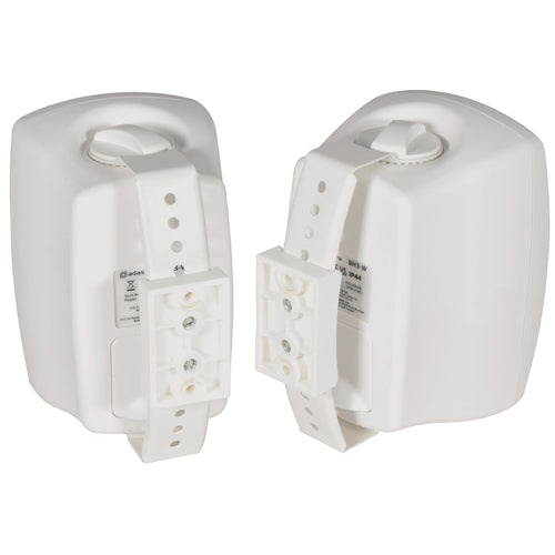 High quality IP44 weather resistant speakers with an extended low frequency driver and dome tweeter housed in an efficiently designed moulded cabinet. Each speaker is supplied with a laterally adjustable wall mounting bracket that can also set to various tilt positions for efficient directivity. Designed for indoor or outdoor background music and public address applications.