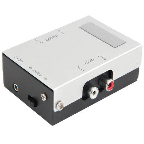 This handy little box will amplify the signal from a turntable, making it suitable for line level (AUX) input.