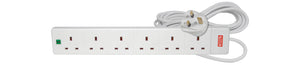 MERCURY 6 Gang Extension Lead with Surge Protection 13A 5M / White